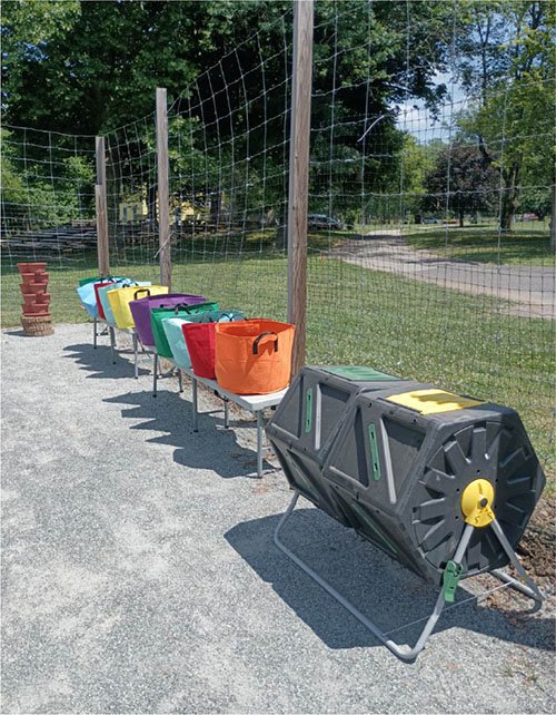 Modular, movable grow bags and benches offer flexibility within the space, allowing the garden layout to adapt to the specific needs of participants. A key innovation was the horizontal trellising system.
