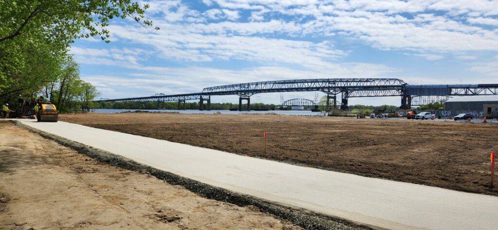 This method and collaborative effort through on-site adjustments achieved the desired geometry for the pathways at the park.