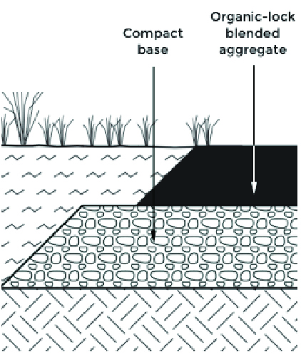Before you begin your installation of the Organic-Lock Stabilized Aggregate, it is important to consider surrounding topography and canopy cover to understand where water is accumulating and flowing. Reducing water movement stress on your pathway surface can first be accomplished by understanding where the water stress is accumulating and where it is being introduced. Once a concern is identified, introducing berms and/or drains in your design, can alleviate the stress before it hits your surface.