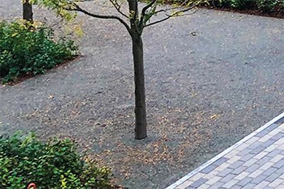 Be aware that by not using a proper base material up to the trunk of the tree that this area may not firm up to the same level as the other areas but there also shouldn’t be much traffic right by the base of the tree anyway.