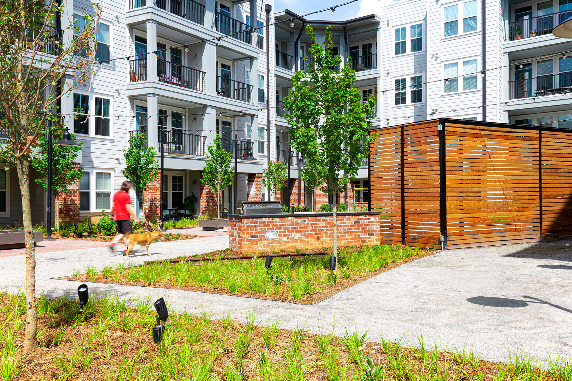 Blue Bird Apartments is an affordable housing development that incorporates green space for residents. Organic-Lock Stabilized Aggregate was selected for the walking paths and picnic nooks around the buildings. The OLSA paths connect doorsteps to a small community garden, a playground, and parking, offering a natural look while meeting low-impact development goals.