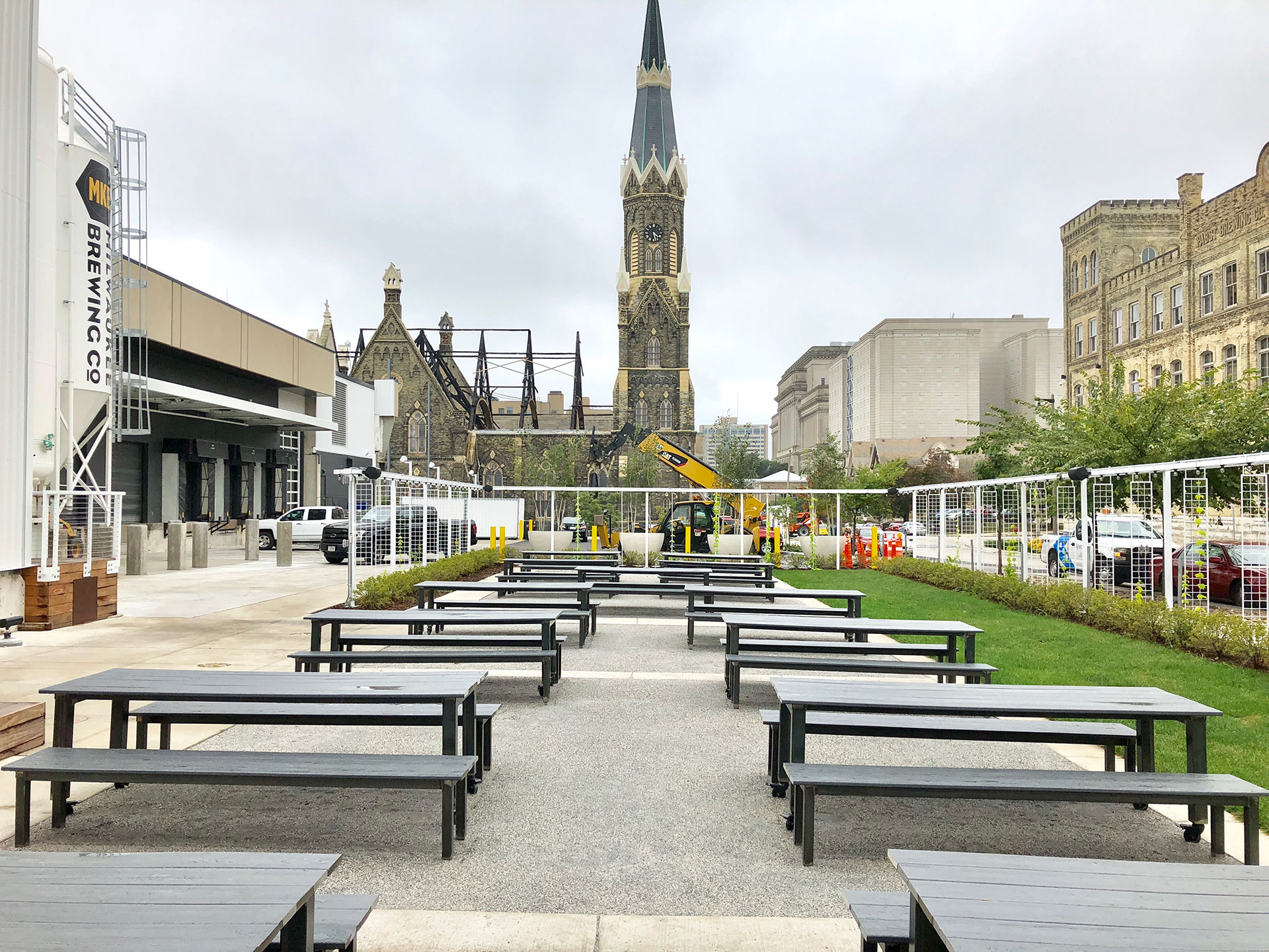 The Milwaukee Brewing Company’s 2nd Street Brewery features a beer garden where Organic-Lock Stabilized Aggregate was used for the outdoor seating area. The ground is covered in a cedar-colored stabilized aggregate, giving the beer garden a casual vibe. The OLSA surface stays cleaner than loose gravel, drains quickly, and supports heavy foot traffic during busy weekends without forming holes or mud.