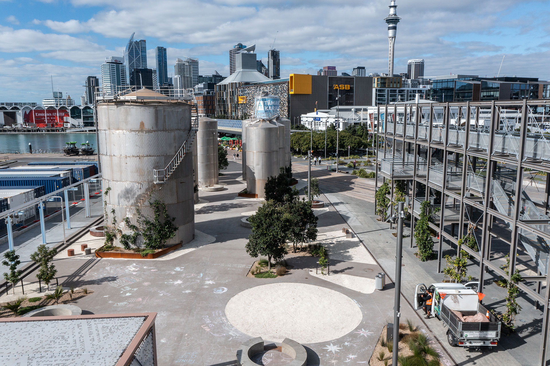 Silo Park on Auckland’s waterfront is an award-winning public space where old silos and docks were converted into a park and events venue. In its Phase 2 expansion (completed 2022), Organic-Lock Stabilized Aggregate was used for pedestrian zones and event spillover areas to complement existing hardscape. The OLSA paving provides a flexible, permeable surface that supports temporary installations without permanent paving and fits the post-industrial aesthetic.